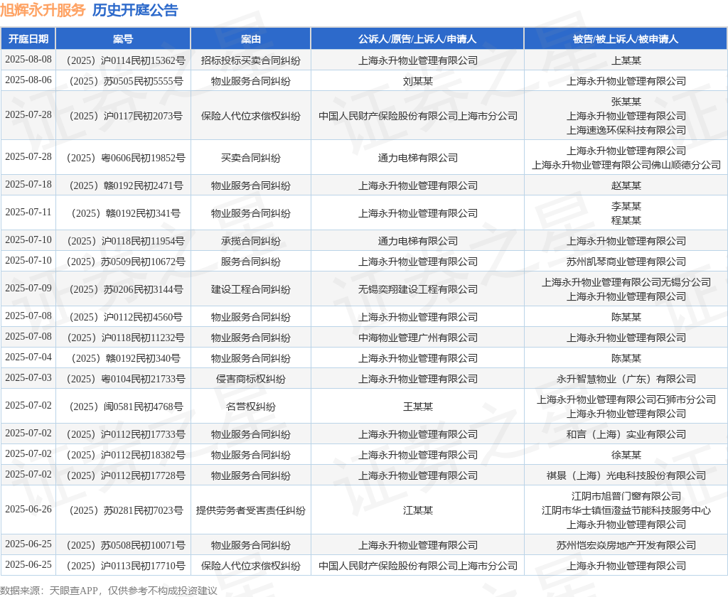 - 旭辉永升服务作为原告/上诉人的1起涉及物业服务合同纠纷的诉讼将于2025年6月1